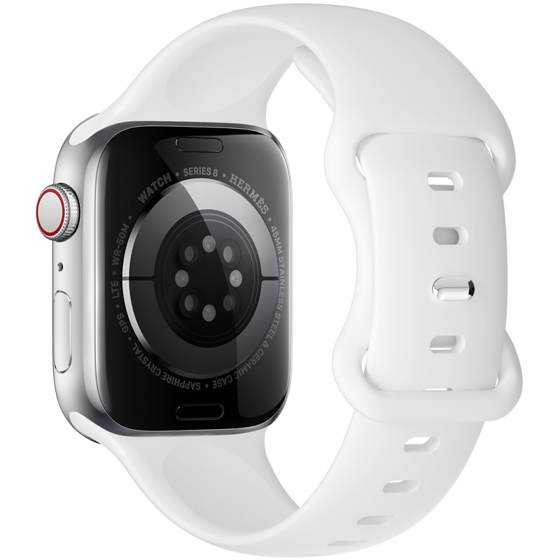Kestävästä ja vedenkestävästä silikonista valmistettu ranneke Apple Watch Series 4-6 40mm -älykellolle. Koska ranneke on kokonaan silikonia, se kestää hyvin kosteutta, mikä tekee siitä täydellisen valinnan aktiiviseen käyttöön, treeniin tai koko päivän käyttöön.