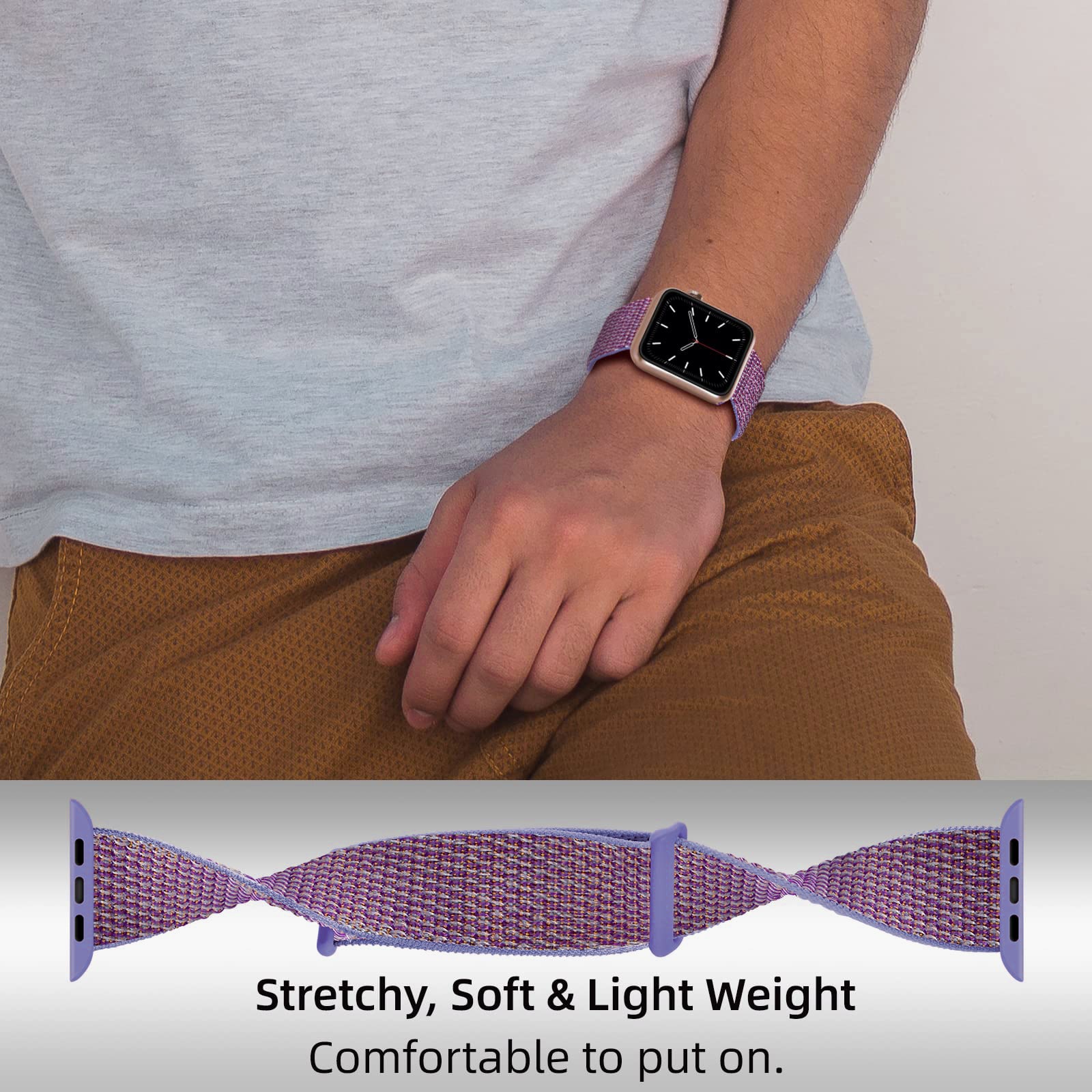 Pehmeä ja mukava nylonranneke, joka sopii Apple Watch SE 40mm -malleihin. Ranneke on helppo säätää ja se suljetaan kätevällä tarranauhalla, mikä takaa miellyttävän ja turvallisen istuvuuden koko päivän ajan.