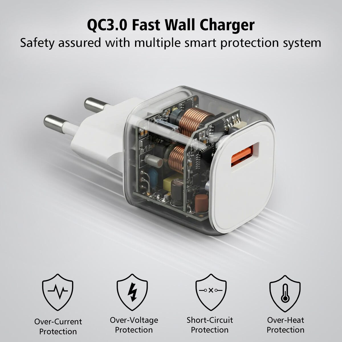 <p>Laturissa on sisäänrakennetut turvatoiminnot jotka suojaavat ylivirralta, ylijännitteeltä, oikosululta ja ylikuumenemiselta turvallisen käytön varmistamiseksi. Universaali tulojännite 100–240 V mahdollistaa käytön useissa maissa oikean sovittimen kanssa. Latauskaapeli ei sisälly jotta voit valita laitteellesi sopivan kaapelin.</p>