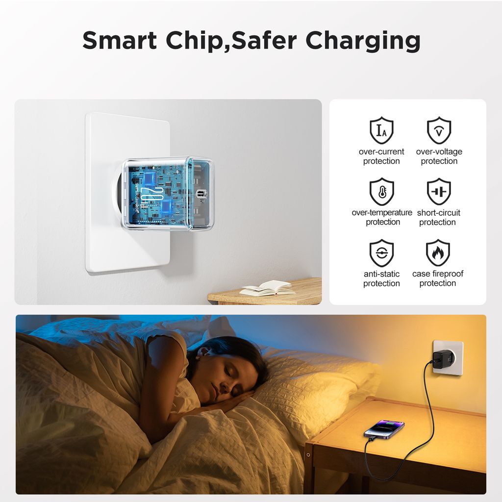 <p>Kompakti ja kannettava muotoilu tekee laturista helppokäyttöisen kotona, toimistossa tai matkalla. Sisäänrakennetut turvajärjestelmät suojaavat ylikuumenemiselta, ylilataukselta ja oikosululta. Mukana tuleva 1m USB-C USB-C-kaapeli tukee jopa 60W tehoa ja tarjoaa täydellisen latausratkaisun.</p>