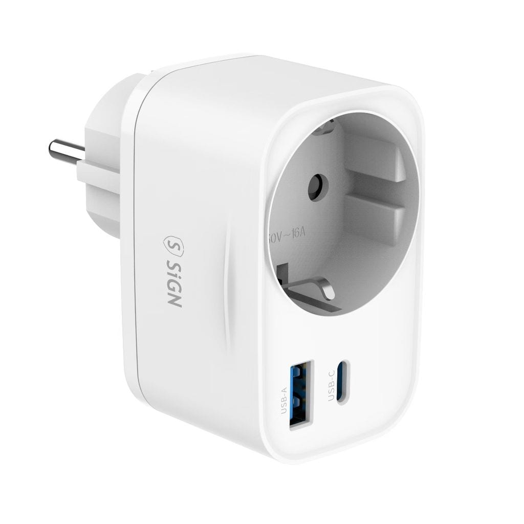 62139Seinäadapteri pistorasialla + USB-C + USB-A 20W Valkoinenhttps://www.phonelife.fi/laturit-kaapelit/seinalaturit/seinalaturit-usb-c/seinaadapteri-pistorasialla-usb-c-usb-a-20w-valkoinen?channelCountry=FIhttps://www.phonelife.fi/pub_images/original/0_-_-_5_-_-_62a58c9b5c7a83f22f8384ec8084c90_KRmie02xc_LEMD2IM787v.jpgInStock16.95EUR/laturit-kaapelit/seinalaturit/seinalaturit-usb-cSiGN<p>Kompakti ja monipuolinen seinäadapteri SiGN-merkiltä, joka tekee useiden laitteiden lataamisesta samanaikaisesti helppoa kotona, toimistolla tai matkalla. Adapterissa on läpivientipistorasia, USB-C-portti ja USB-A-portti, joten voit käyttää tavallista seinäpistorasiaa samalla kun lataat laitteitasi. USB-C-portti tukee Power Delivery -pikalatausta jopa 20 W tehoon yhteensopiville älypuhelimille, tableteille ja muille laitteille, kun taas USB-A-portti tarjoaa luotettavaa latausta perinteisille USB-laitteille. Kompakti muotoilu tekee adapterista käytännöllisen sängyn vieressä, työpöydällä tai olohuoneessa. Sisäänrakennettu ylivirta- ja oikosulkusuoja takaa turvallisen käytön arjessa.</p>
