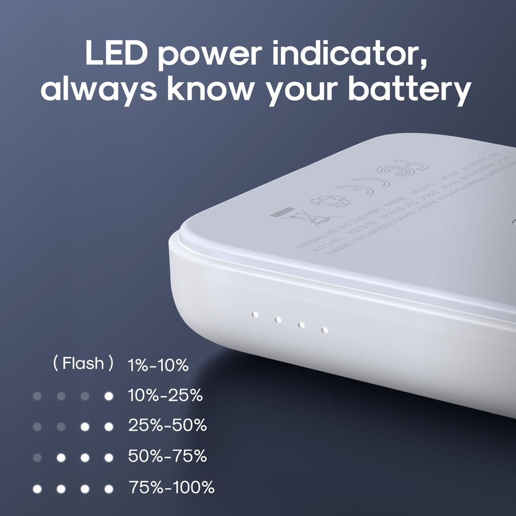 Varavirtalähde tukee langatonta pikalatausta jopa 15W ja sisältää myös USB-C- ja USB-A-portit useiden laitteiden lataamiseen. Suuri 10 000 mAh kapasiteetti mahdollistaa useita latauskertoja puhelimille ja muille USB-laitteille.