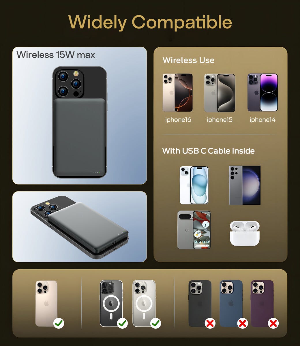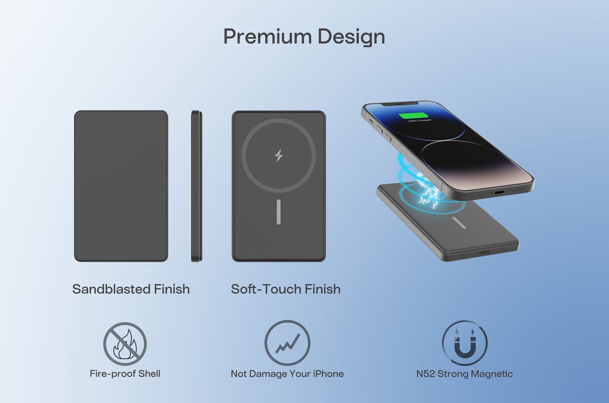 62133Magneettinen Langaton Powerbank 5000mAh 15W Harmaahttps://www.phonelife.fi/laturit-kaapelit/varavirtalahteet/magneettinen-langaton-powerbank-5000mah-15w-harmaa?channelCountry=FIhttps://www.phonelife.fi/pub_images/original/68734964957214.jpgInStock27.95EUR/laturit-kaapelit/varavirtalahteet<p>Kompakti ja ohut langaton magneettinen varavirtalähde tekee laitteiden lataamisesta helppoa missä tahansa liikutkin. Tehokas 5000 mAh kapasiteetti tarjoaa luotettavaa lisävirtaa silloin kun akun varaustaso laskee ja tekee varavirtalähteestä täydellisen matkalle, työmatkoille ja päivittäiseen käyttöön. MagSafe- ja Qi-tuki mahdollistaa yhteensopivien laitteiden vakaan ja sujuvan latauksen magneettisen langattoman yhteyden avulla. Varavirtalähdettä voidaan käyttää myös kaapelilla USB-C-liitännän kautta, mikä tuo joustavuutta lataamiseen eri tilanteissa. Tuote on hyväksytty mukaan lentomatkoille ja yhdistää korkean suorituskyvyn, turvallisen energianhallinnan ja kannettavan käytännöllisyyden kompaktissa muodossa.</p>