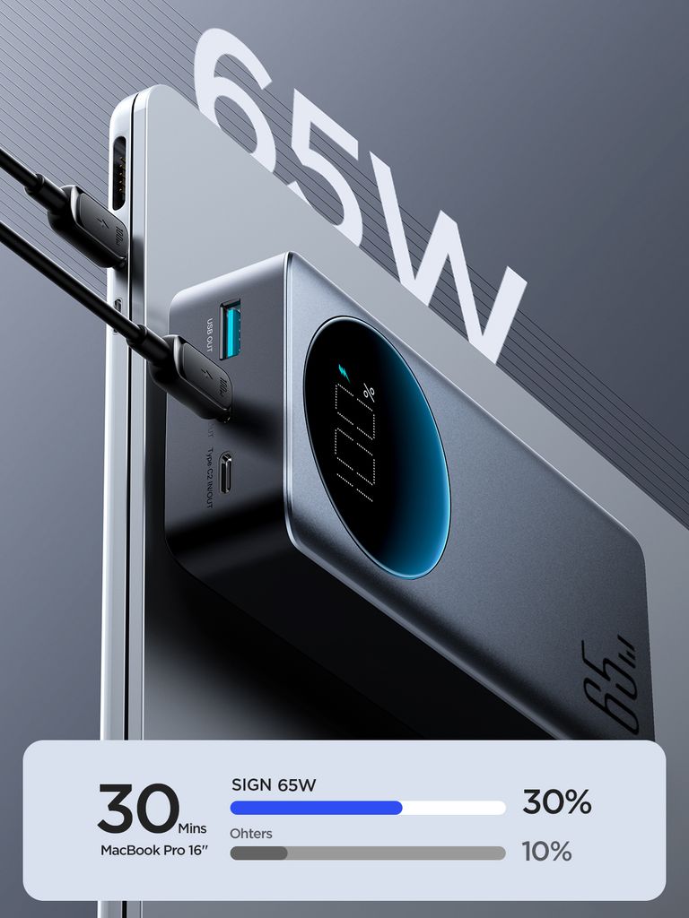 <p>Suuri 30000mAh akkukapasiteetti mahdollistaa laitteiden lataamisen useita kertoja ennen kuin varavirtalähde tarvitsee ladata uudelleen. Digitaalinen näyttö näyttää selkeästi jäljellä olevan akun varaustason ja lataustilan. Powerbankissa on myös matalavirtaustila, joka on suunniteltu pienille laitteille, kuten langattomille kuulokkeille ja älykelloille. USB-C USB-C-kaapeli (1,2 m) sisältyy pakkaukseen tehokasta ja vakaata latausta varten.</p>