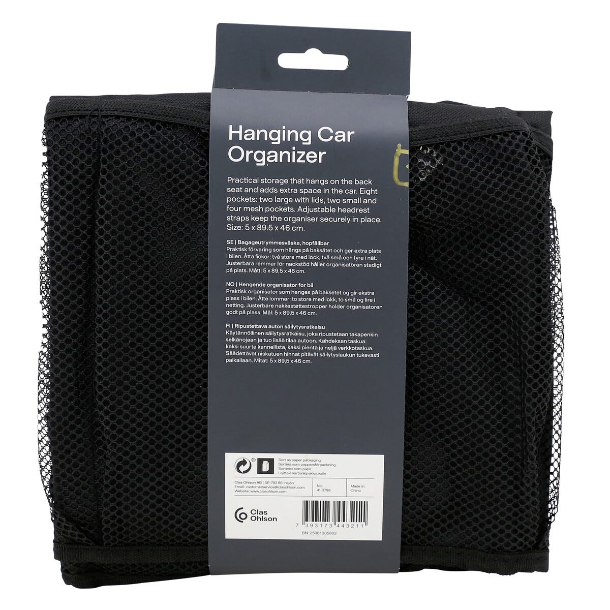 Auton järjestelijä 8 lokerolla tavaratilaan on käytännöllinen ja tilaa säästävä ratkaisu joka auttaa pitämään auton siistinä ja tavarat helposti saatavilla. Säilytyslaukku ripustetaan helposti takaistuimen niskatukien taakse ja vapauttaa arvokasta lattiatilaa tavaratilassa. Sopii erinomaisesti autonhoitotarvikkeiden, työkalujen, lelujen tai muiden arjen tavaroiden järjestämiseen.