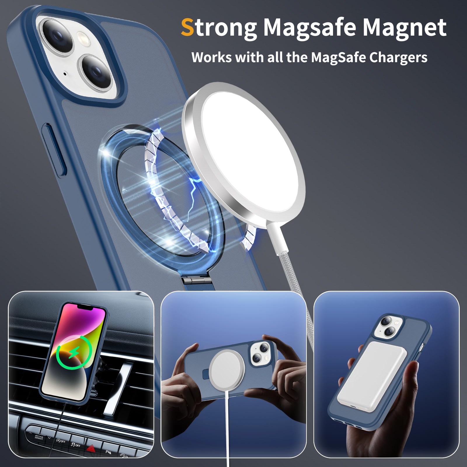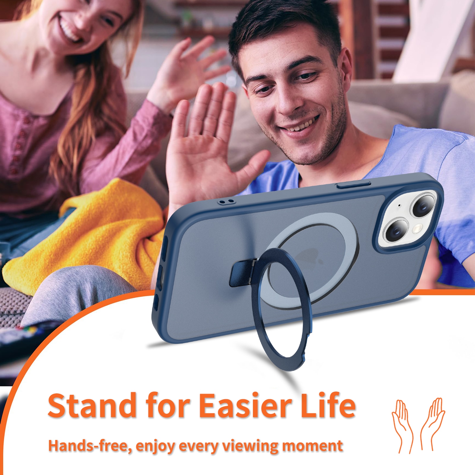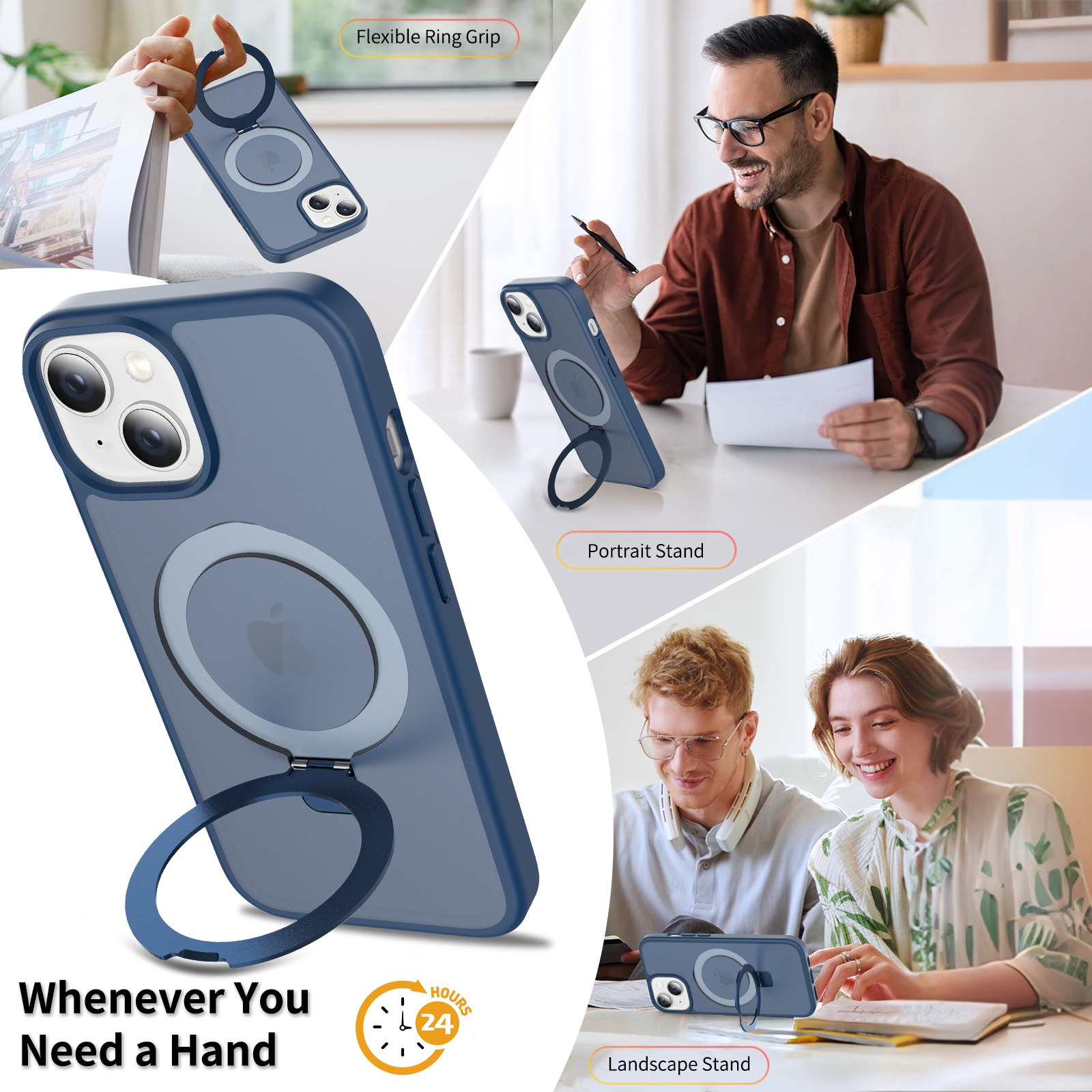 - Taitettava MagSafe-rengas toimii myös puhelintelineenä