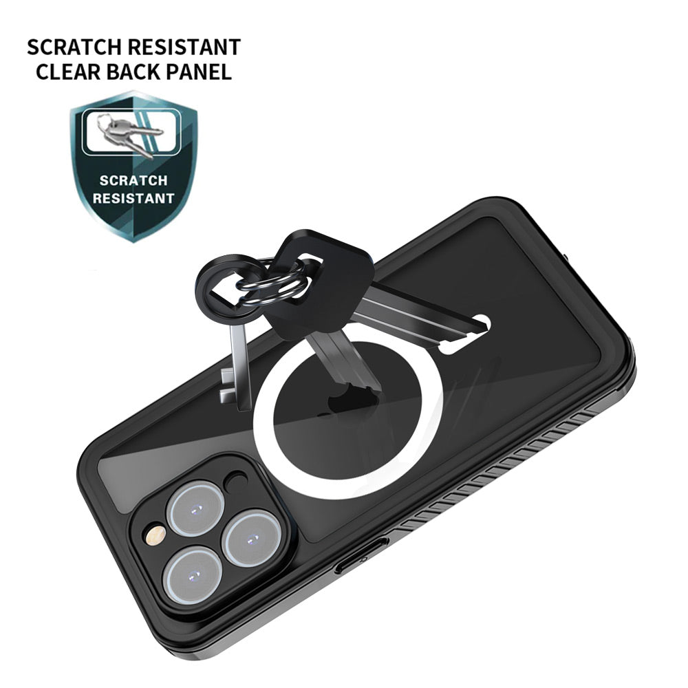 Täysin peittävä veden- ja iskunkestävä MagSafe-kuori iPhone 15 Pro:lle, merkiltä Armor-X. Kuori on IP68-luokiteltu, joka tarkoittaa että se on vedenkestävä jopa tunnin ajan 2 metrin syvyydessä ja erittäin iskunkestävä, täyttää sotilasstandardin pudotustestin MIL STD 810F-528. Kuori koostuu kovasta muoviytimestä, joka on peitetty TPU:lla iskunkestoa varten, sekä sisäänrakennetusta magneettirenkaasta, joka tekee kuoresta täysin MagSafe-yhteensopivan. Näin voit käyttää kaikentyyppisiä MagSafe-lisätarvikkeita, kuten korttikoteloita ja latureita. Kuoressa on myös sisäänrakennettu näytönsuoja. Lue lisää