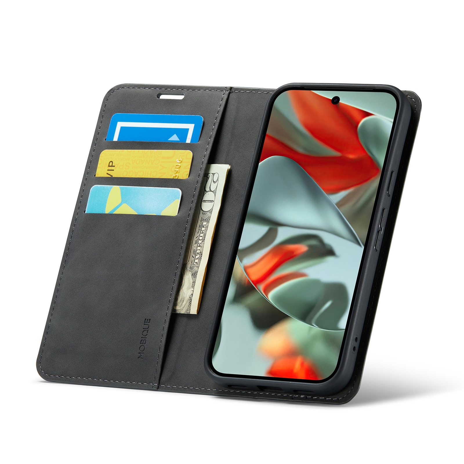 Tyylikäs ja ohut puhelinlompakko mallille Google Pixel 10. Kuoressa on silkinpehmeä kansi, joka on valmistettu kestävästä keinonahasta, sekä sisäinen iskuja vaimentava TPU-sisäkuori. Kansi suojaa tehokkaasti näyttöä naarmuilta, ja sisäkuori antaa hyvän suojan kolhuilta ja pudotuksilta.