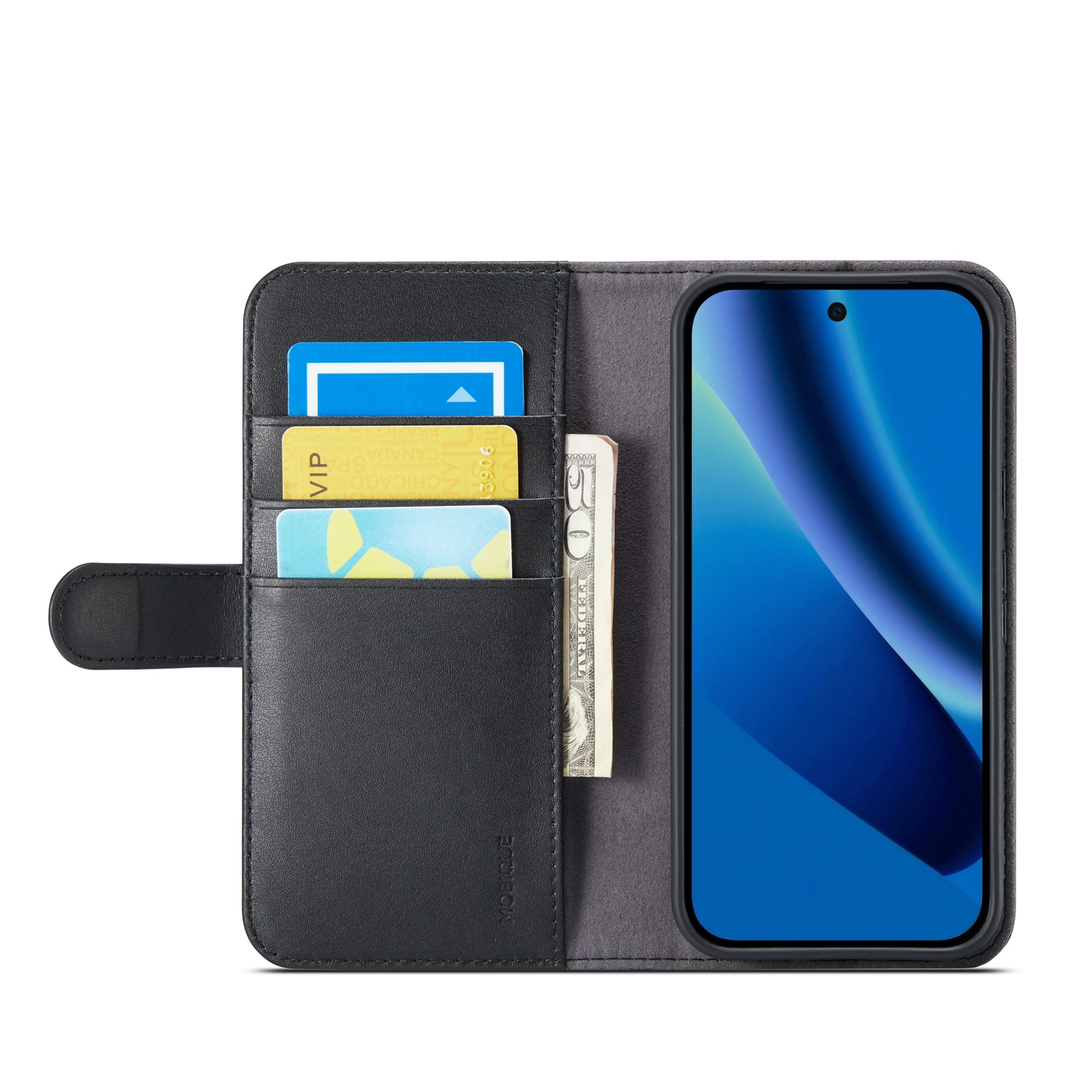 Kätevä ja tyylikäs kännykkäkotelo aitoa nahkaa. Kotelo suojaa koko puhelimesi ja kannen sisäpuolella on lompakko. Lompakko on tilava, jossa on kolme korttitaskua ja setelitasku.