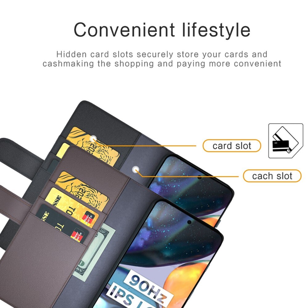 Kätevä ja tyylikäs kännykkäkotelo aitoa nahkaa. Kotelo suojaa koko puhelimesi ja kannen sisäpuolella on lompakko. Lompakko on tilava, jossa on kolme korttitaskua ja setelitasku.
