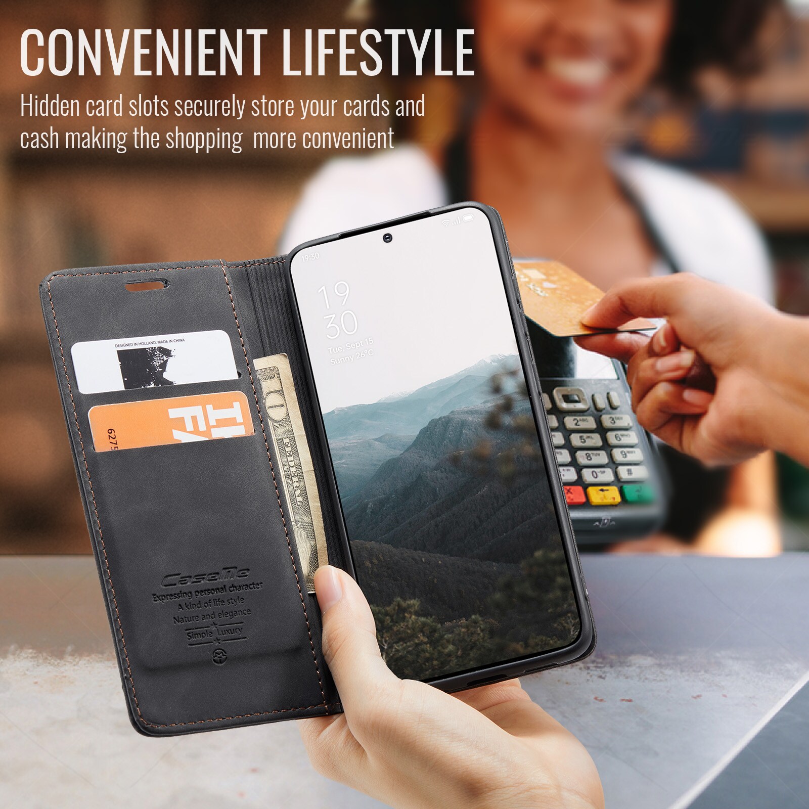 Ohut ja tyylikäs lompakkokotelo Casemelta OnePlus 15 -puhelimelle. Kotelon avulla suojaat puhelimesi joka puolelta tinkimättä ulkonäöstä. Läppä pysyy kiinni näkymättömien magneettien avulla, mikä takaa ohuen muotoilun ilman ylimääräistä bulkkiutta.