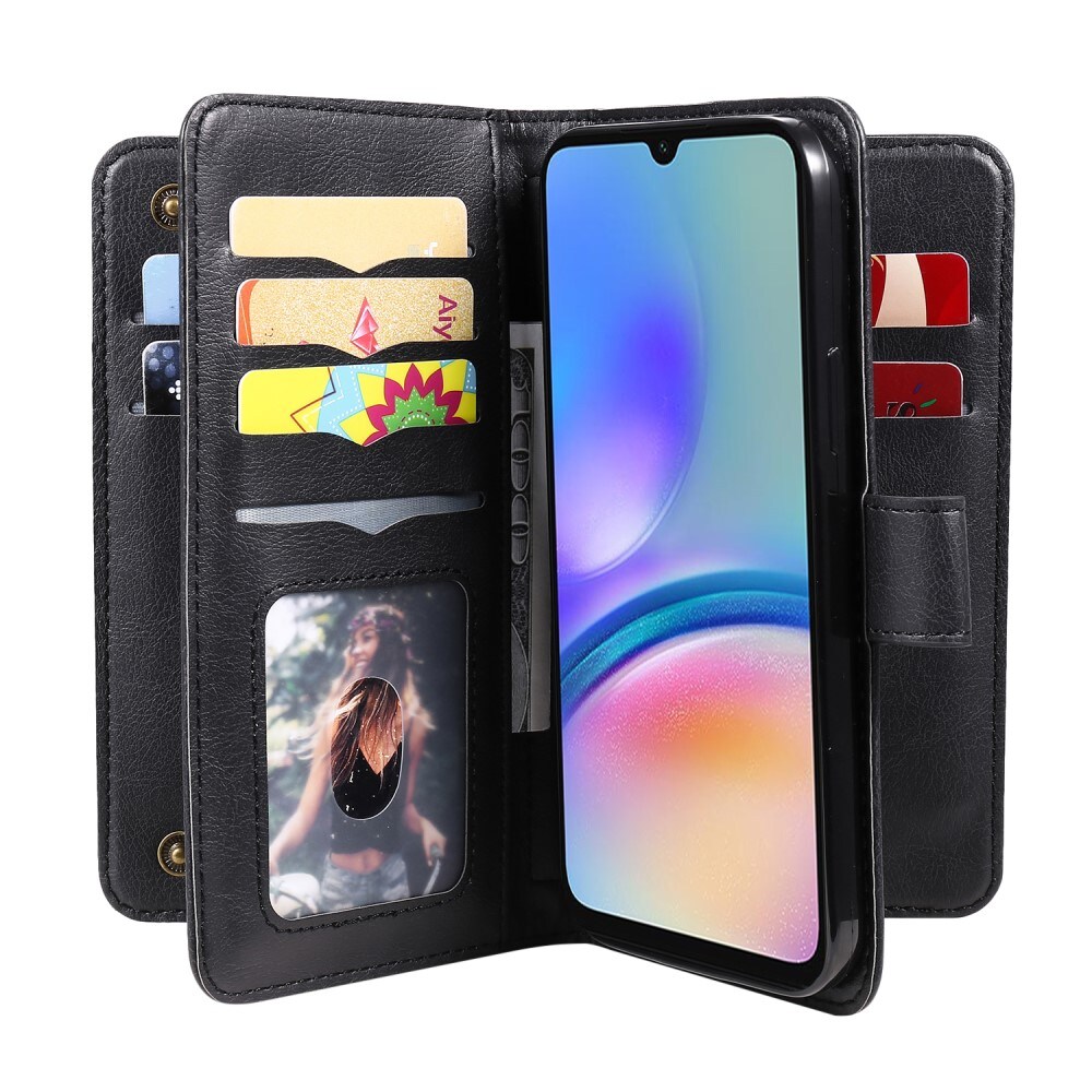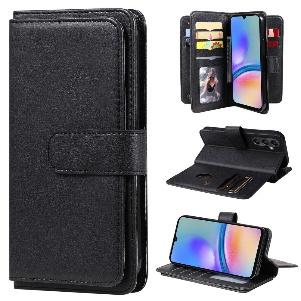 Synteettisestä nahasta valmistettu lompakkokotelo, jossa on useita korttipaikkoja Samsung Galaxy A05s. Lompakkokotelo suojaa koko puhelinta samalla kun kuljetat kaikki kortit, käteisrahan ja kuitit. Kotelosta voi muodostaa telineen puhelimellesi, joka on loistava kun sinä tai lapsesi katsotte elokuvia, sarjoja tai YouTubea. Sisäkuori on kiinnitetty koteloon, joka antaa puhelimellesi lisäsuojaa, jos se saattaisi pudota. Kotelo pysyy suljettuna kätevällä magneettiläpällä, joka mahdollistaa puhelimen säilyttämisen laukussa ilman että näyttö naarmuuntuu muiden esineiden takia.