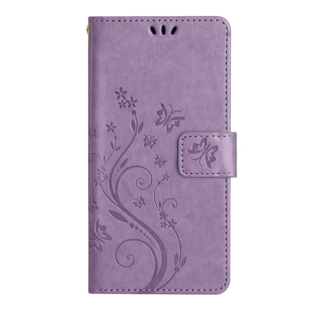 Kännykkäkotelo, jossa perhosia ja kuvio painettu nahkaan. Lompakkokotelo on hyvännäköinen ja suojaa koko puhelinta, jotta vältyt vahingoilta, naarmuilta ja lialta.