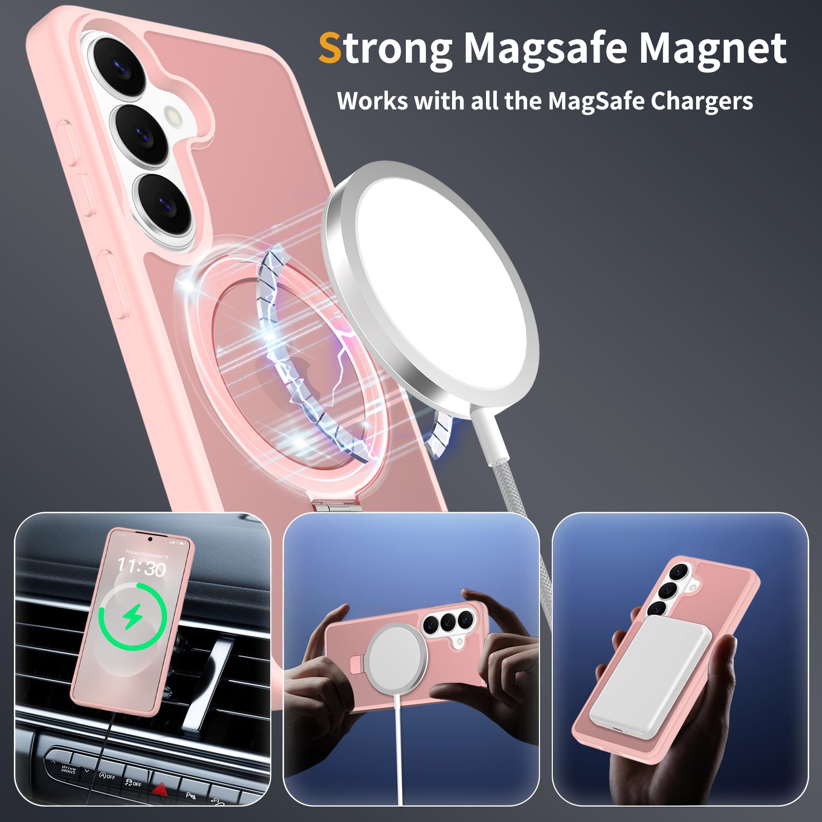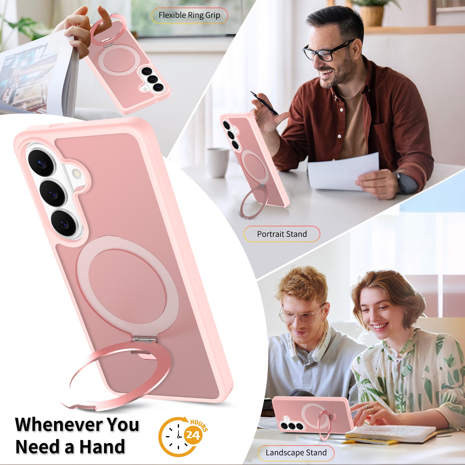 - Taitettava MagSafe-rengas toimii myös puhelintelineenä