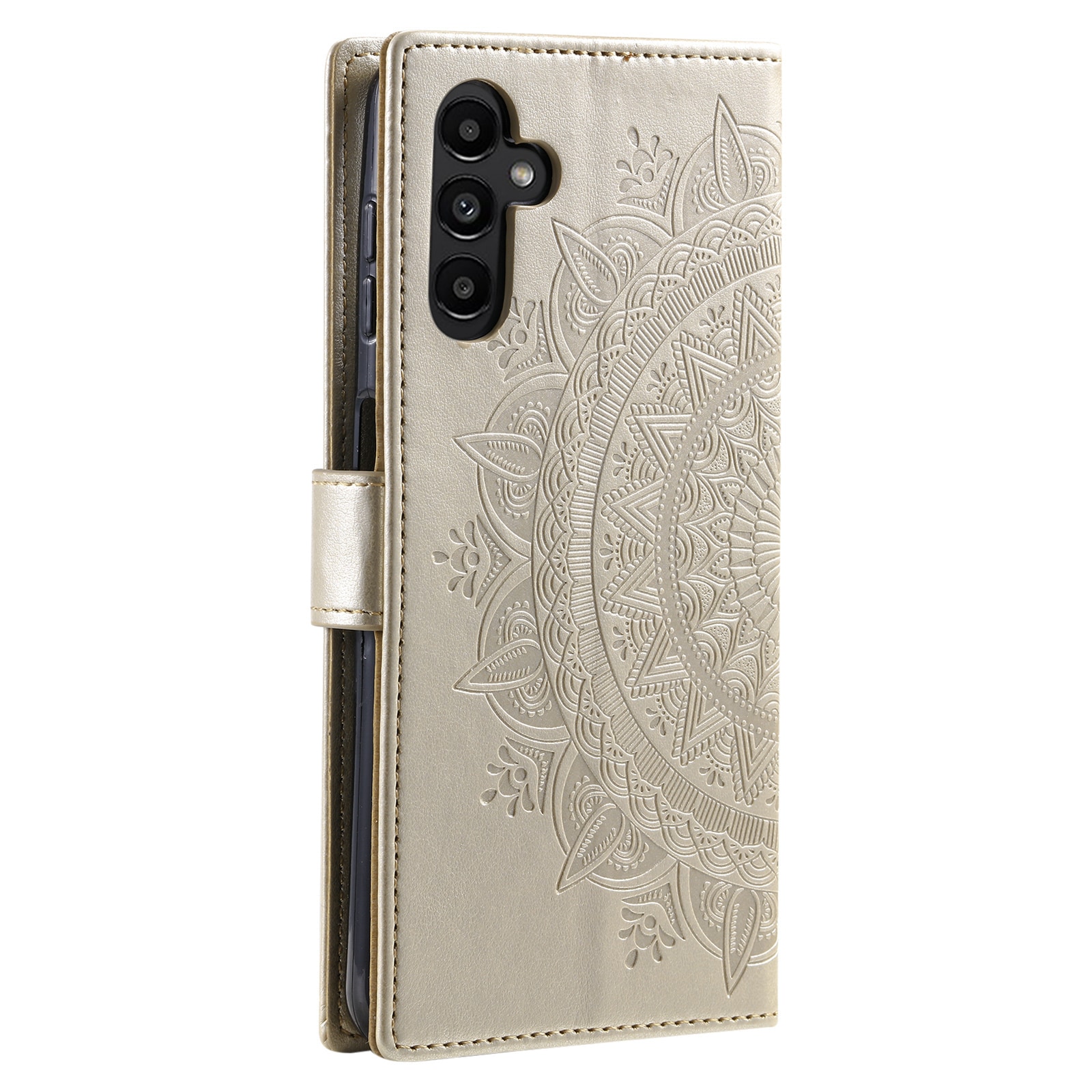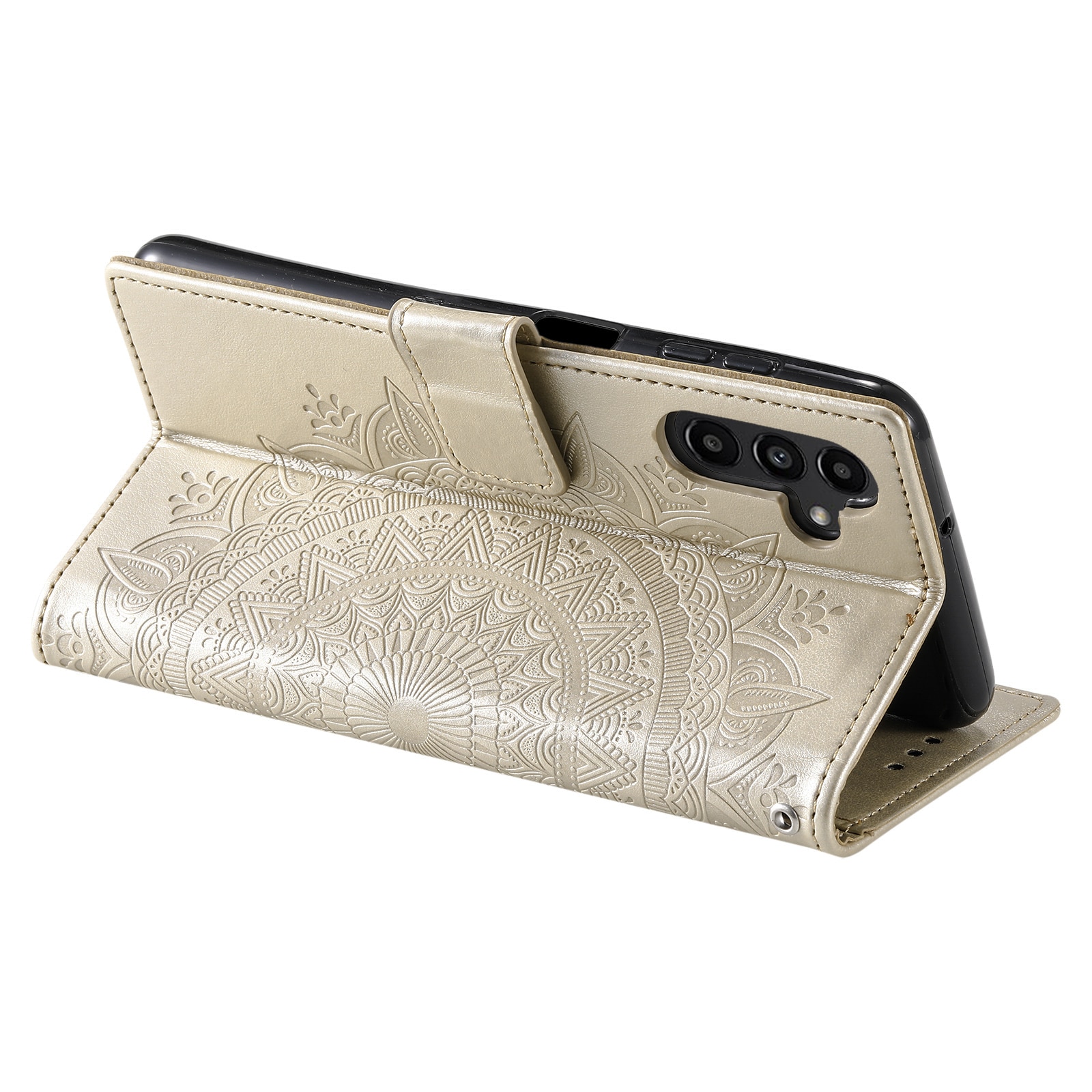 Kännykkäkotelo, jossa mandala ja kuvio painettu nahkaan. Lompakkokotelo on hyvännäköinen ja suojaa koko puhelinta, jotta vältyt vahingoilta, naarmuilta ja lialta.