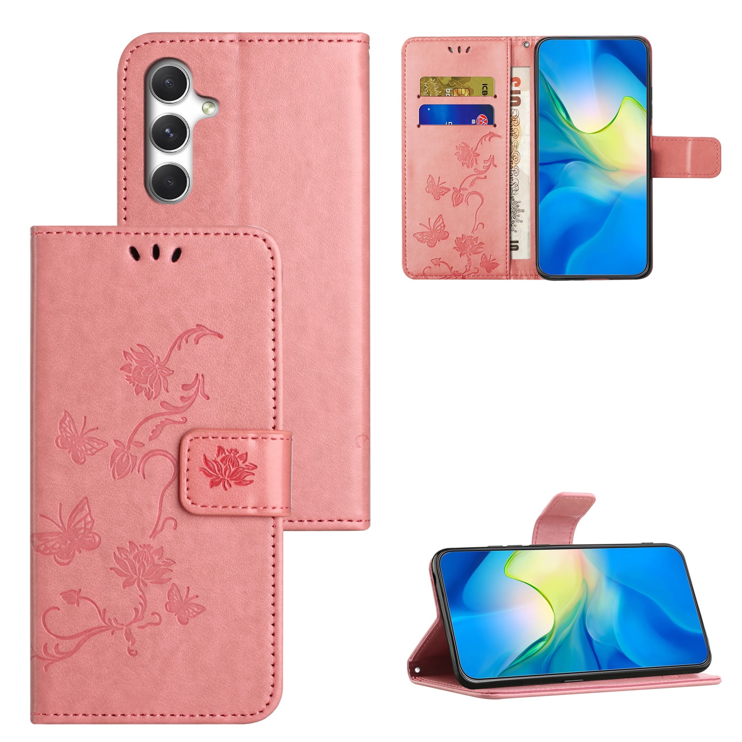 Kännykkäkotelo, jossa perhosia ja kuvio painettu nahkaan. Lompakkokotelo on hyvännäköinen ja suojaa koko puhelinta, jotta vältyt vahingoilta, naarmuilta ja lialta.