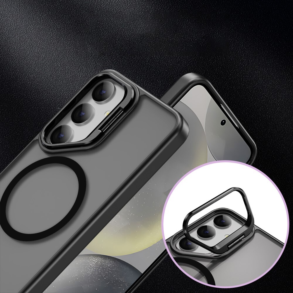 Tyylikäs ja käytännöllinen hybridikuori, jossa on taitettava tukijalka ja MagSafe toiminto Samsung Galaxy S24 Ultra:an. Parhaan suojaustason iskuja ja putoamisia vastaan saavuttaa kahden osan rakenne, joka koostuu TPU-ytimestä sekä kovasta muovikuoresta. Kameran ympärillä on metallireunus, joka estää kameran linssien vahingoittumisen ja toimii myös kätevänä telineenä elokuvien tai videoiden katseluun, tai pelatessa mukavassa näyttökulmassa.
