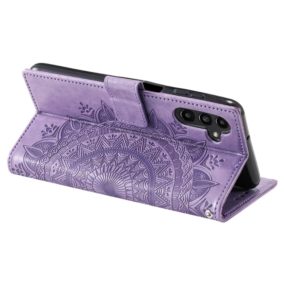 Kännykkäkotelo, jossa mandala ja kuvio painettu nahkaan. Lompakkokotelo on hyvännäköinen ja suojaa koko puhelinta, jotta vältyt vahingoilta, naarmuilta ja lialta.