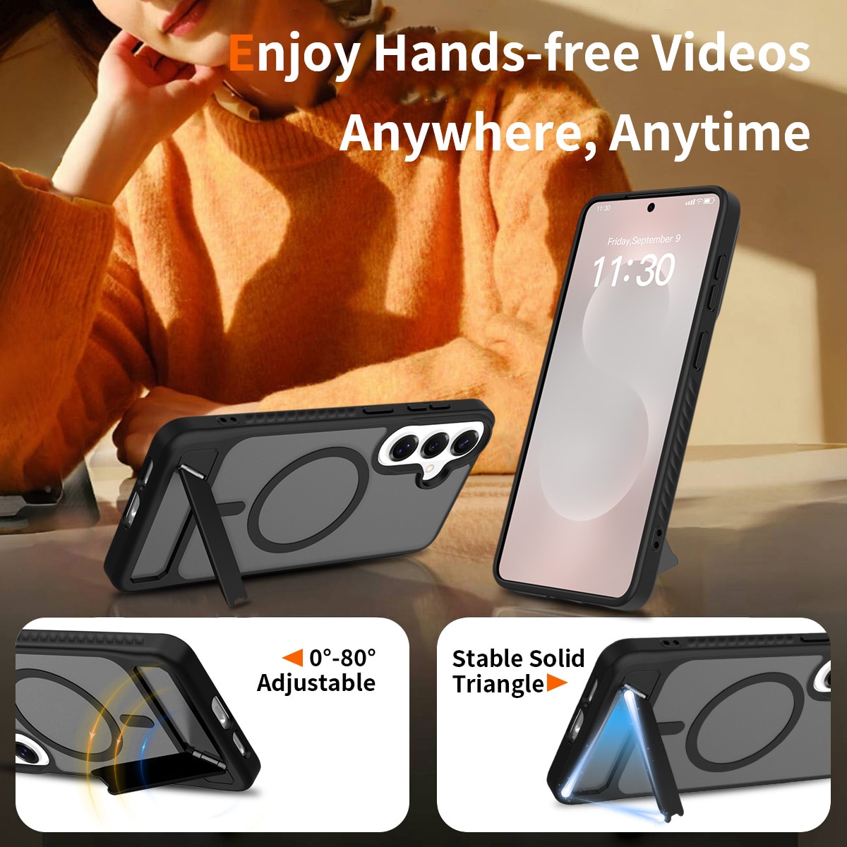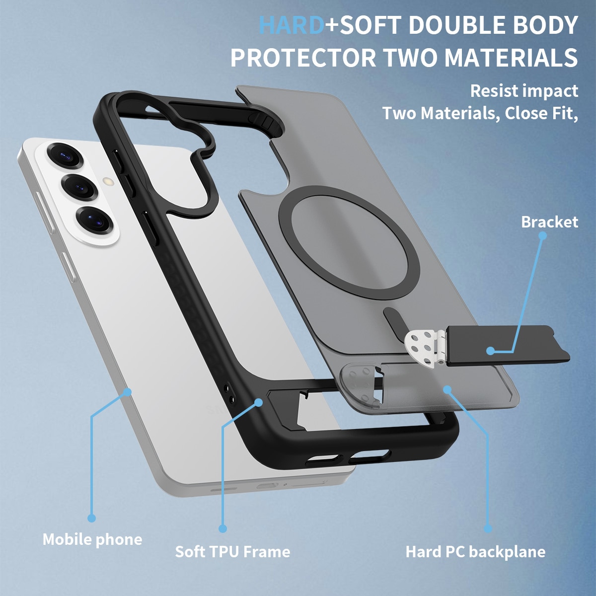 Tyylikäs ja käytännöllinen hybridikuori sisäänrakennetulla jalustalla mallille Samsung Galaxy S26 Plus. Kuori suojaa puhelintasi iskuilta ja naarmuilta kestävällä yhdistelmällä kovamuovia ja joustavaa TPU-materiaalia. Taitettava jalusta tekee elokuvien, videoiden ja pelien katselusta helppoa täysin handsfree-tilassa.