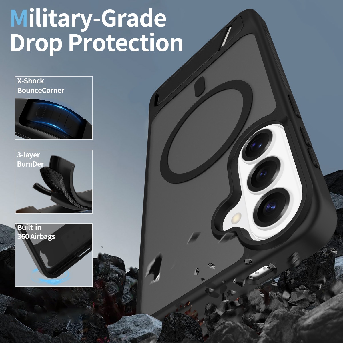 Takapuolella oleva magneettirengas on yhteensopiva MagSafe-tarvikkeiden, kuten langattomien latureiden ja korttipidikkeiden, kanssa, mikä tekee käytöstä sujuvaa ja kätevää.