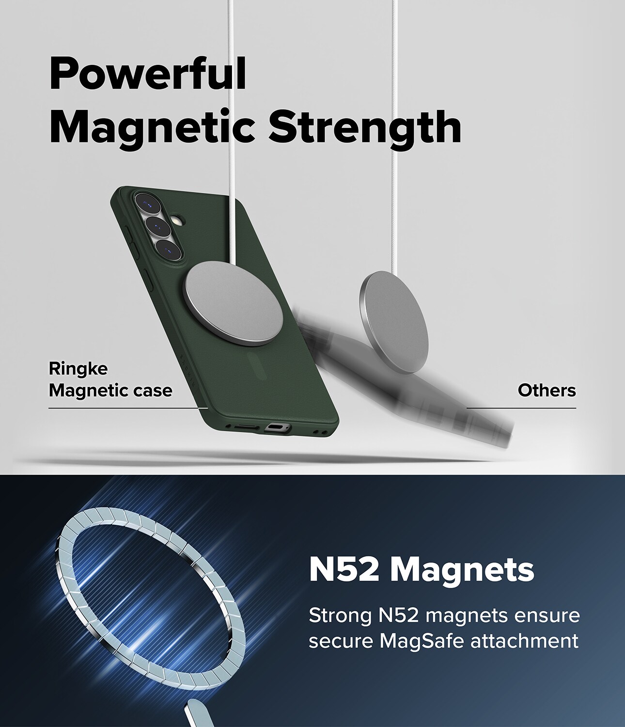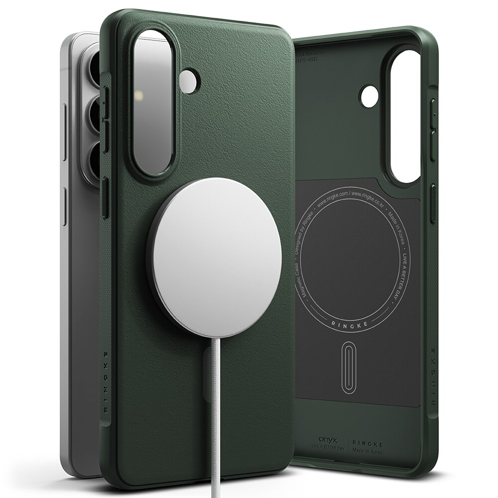Onyx Magnetic on Ringken kestävä suojakuori Samsung Galaxy S26 Plus -puhelimelle, joka tukee MagSafe-ominaisuutta. Se yhdistää tyylikkään muotoilun ja erinomaisen iskusuojauksen. Kuoressa on vahvistetut kulmat, korotetut reunat ja tuntopainikkeet. MagSafe-yhteensopivuuden ansiosta voit käyttää MagSafe-lisävarusteita ja ladata langattomasti kuori paikoillaan.