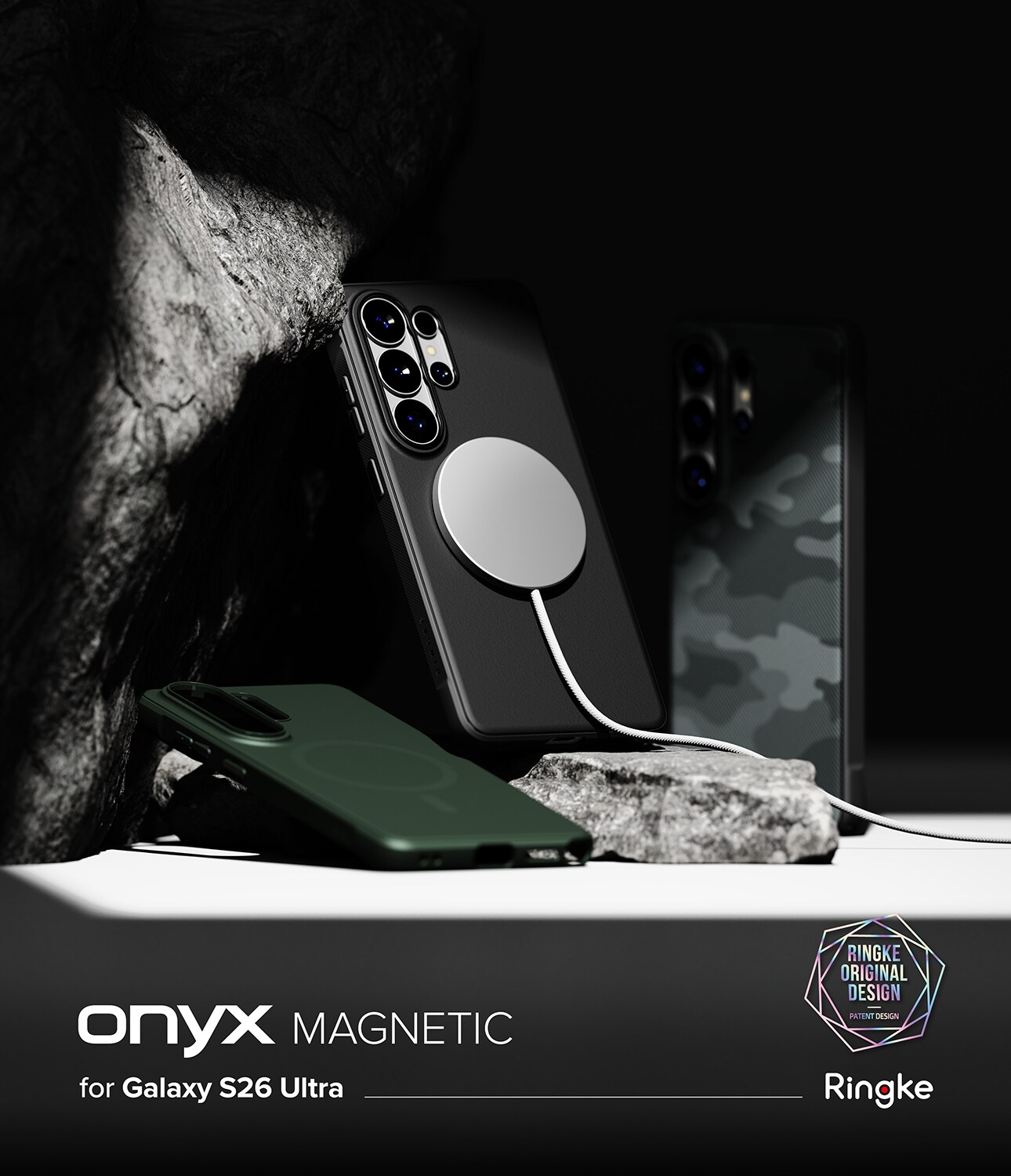 Onyx Magnetic on Ringken kestävä suojakuori Samsung Galaxy S26 Ultra -puhelimelle, joka tukee MagSafe-ominaisuutta. Se yhdistää tyylikkään muotoilun ja erinomaisen iskusuojauksen. Kuoressa on vahvistetut kulmat, korotetut reunat ja tuntopainikkeet. MagSafe-yhteensopivuuden ansiosta voit käyttää MagSafe-lisävarusteita ja ladata langattomasti kuori paikoillaan.