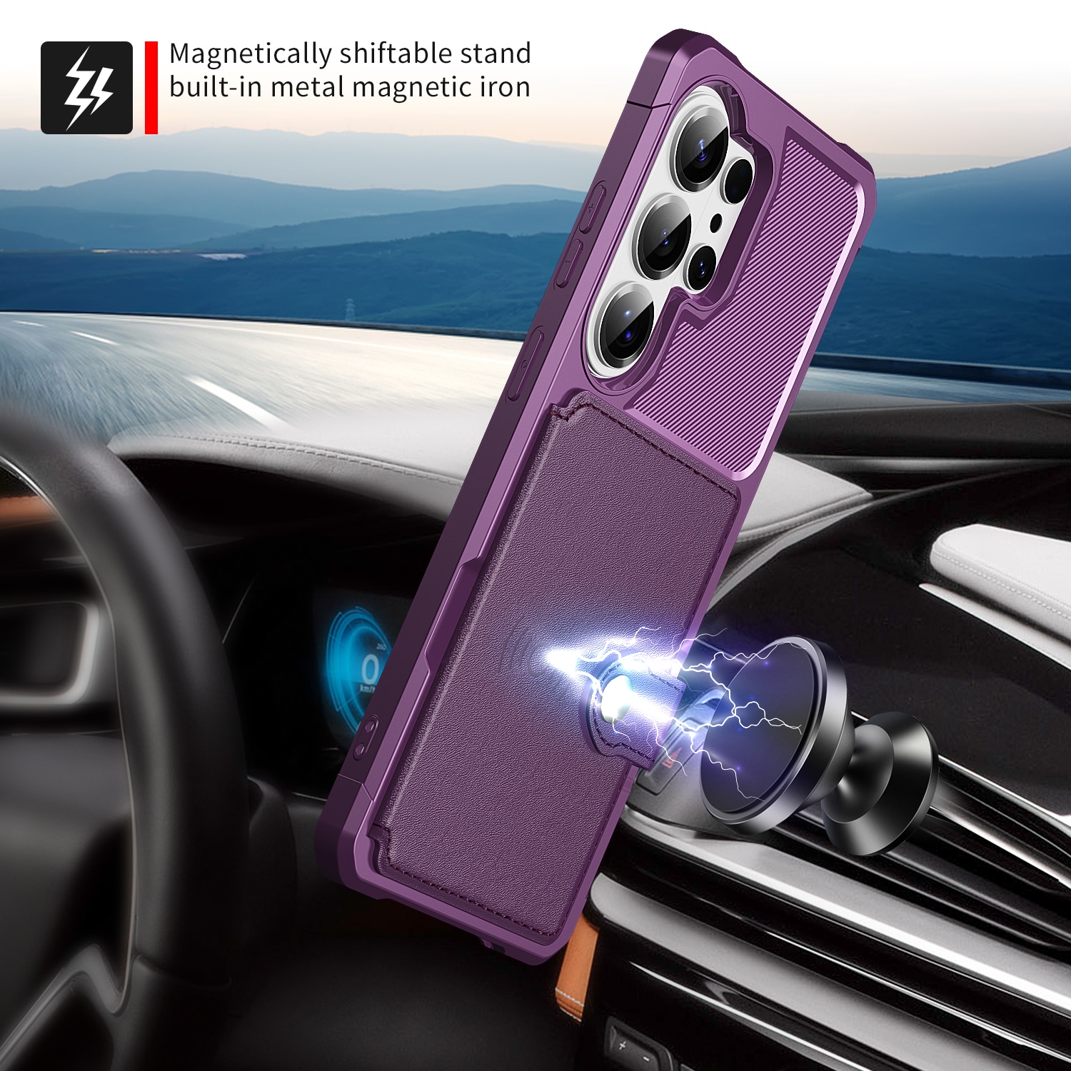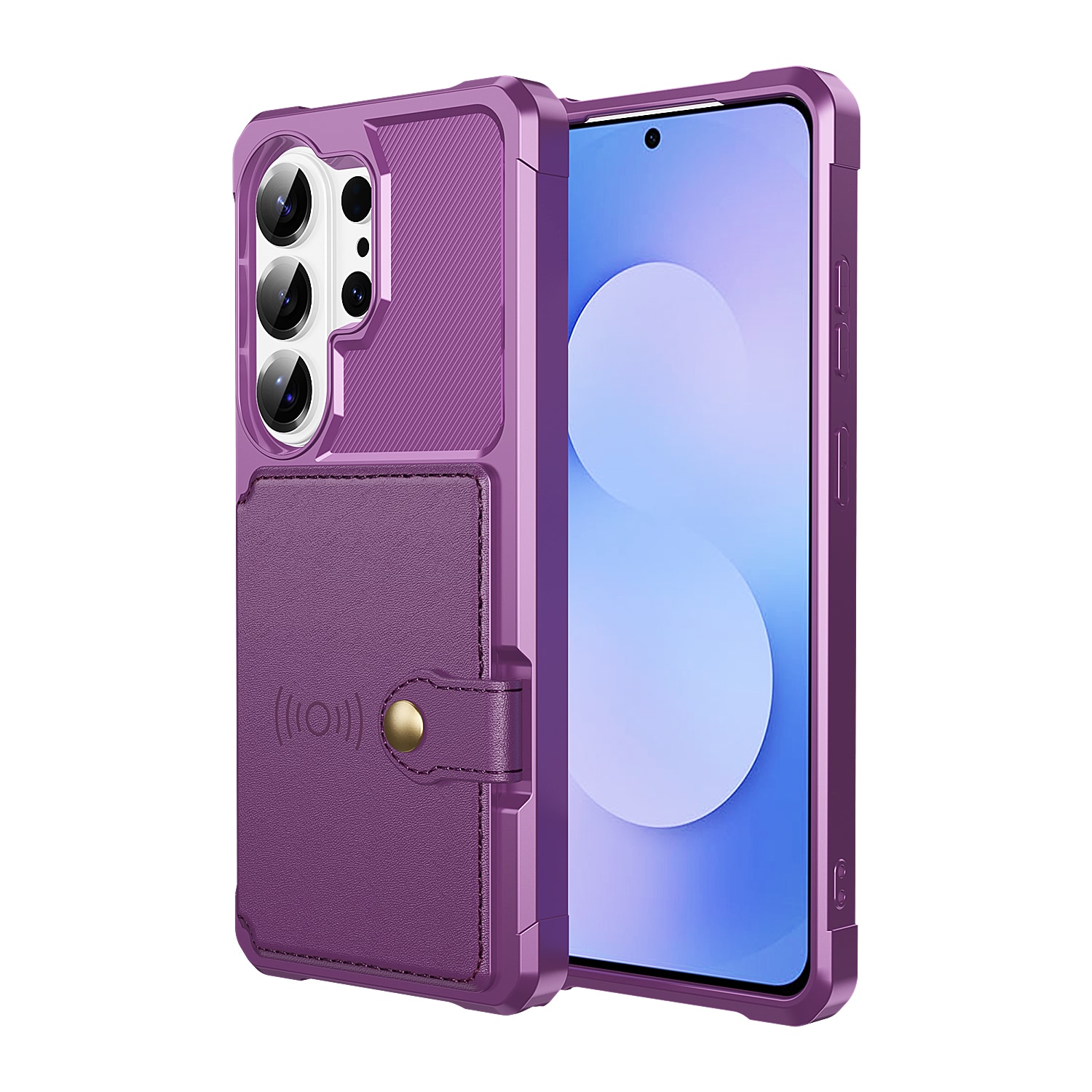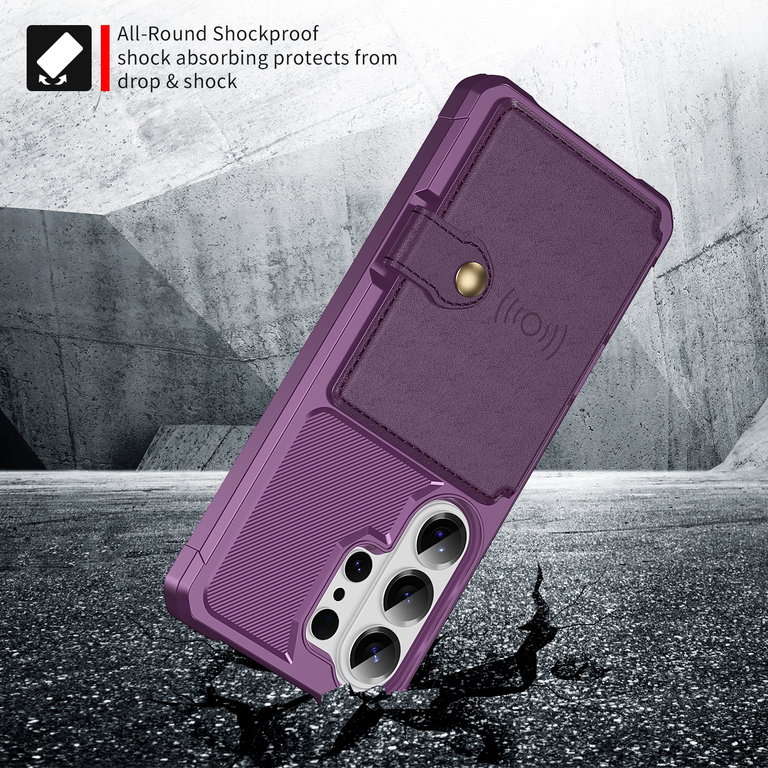 Iskua vaimentava puhelinkuori, jossa on piilotettu korttitasku takana, mallille Samsung Galaxy S26 Ultra. Kuorella on tyylikäs muotoilu ja vahvistetut kulmat parhaan mahdollisen suojan takaamiseksi.