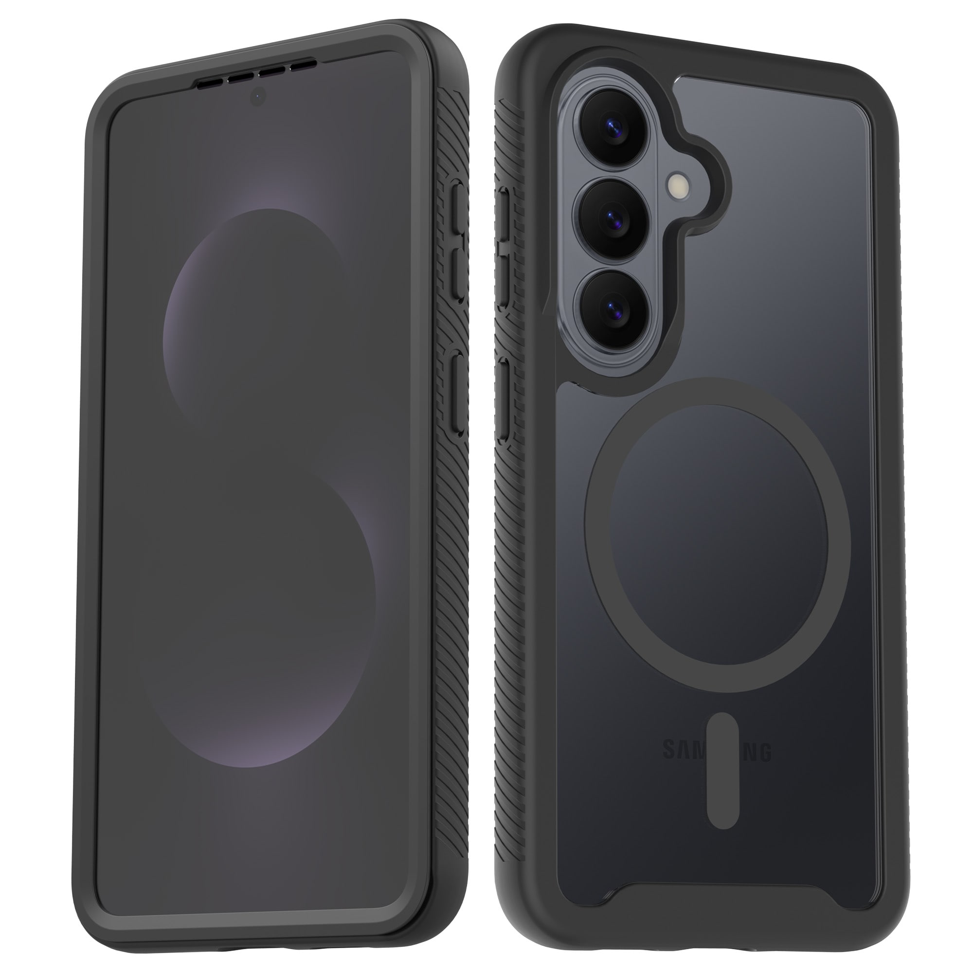 Suojaa Samsung Galaxy S26 -puhelimesi tällä täysin peittävällä ja magneettisella suojakuorella, joka antaa laitteellesi optimaalisen suojan joka puolelta. Kaksiosainen rakenne sisältää etuosan integroidulla näytönsuojalla, joka suojaa koko etupuolen, ja takaosan, joka suojaa iskuilta ja kulumiselta.