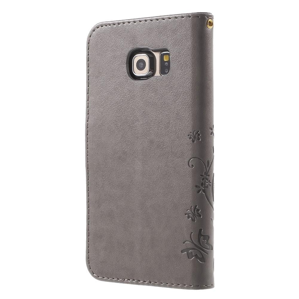 Kännykkäkotelo, jossa perhosia ja kuvio painettu nahkaan. Lompakkokotelo on hyvännäköinen ja suojaa koko puhelinta, jotta vältyt vahingoilta, naarmuilta ja lialta.