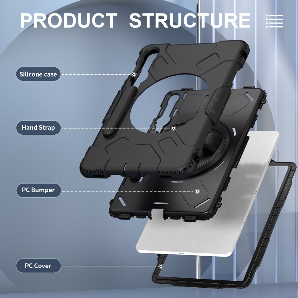 Tukeva suojakuori Samsung Galaxy Tab S9 FE -laitteelle, joka tarjoaa 360 asteen suojan koko tabletin ympärille. Suojaa tablettisi tehokkaasti kolhuilta ja pudotuksilta tämän kolmikertaisen rakenteen avulla, jossa yhdistyvät kova sisäkuori, silikoninen ulkokuori ja sisäänrakennettu etusuoja.