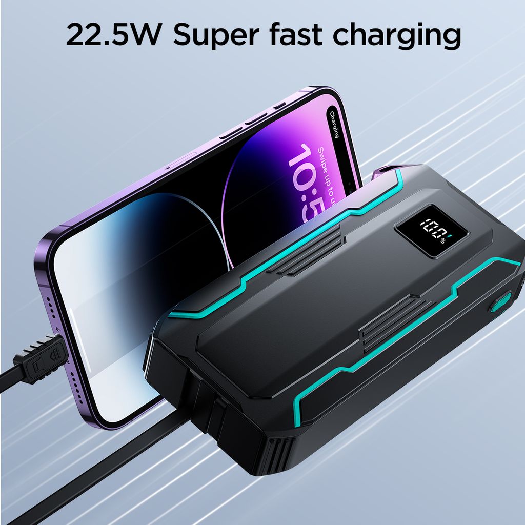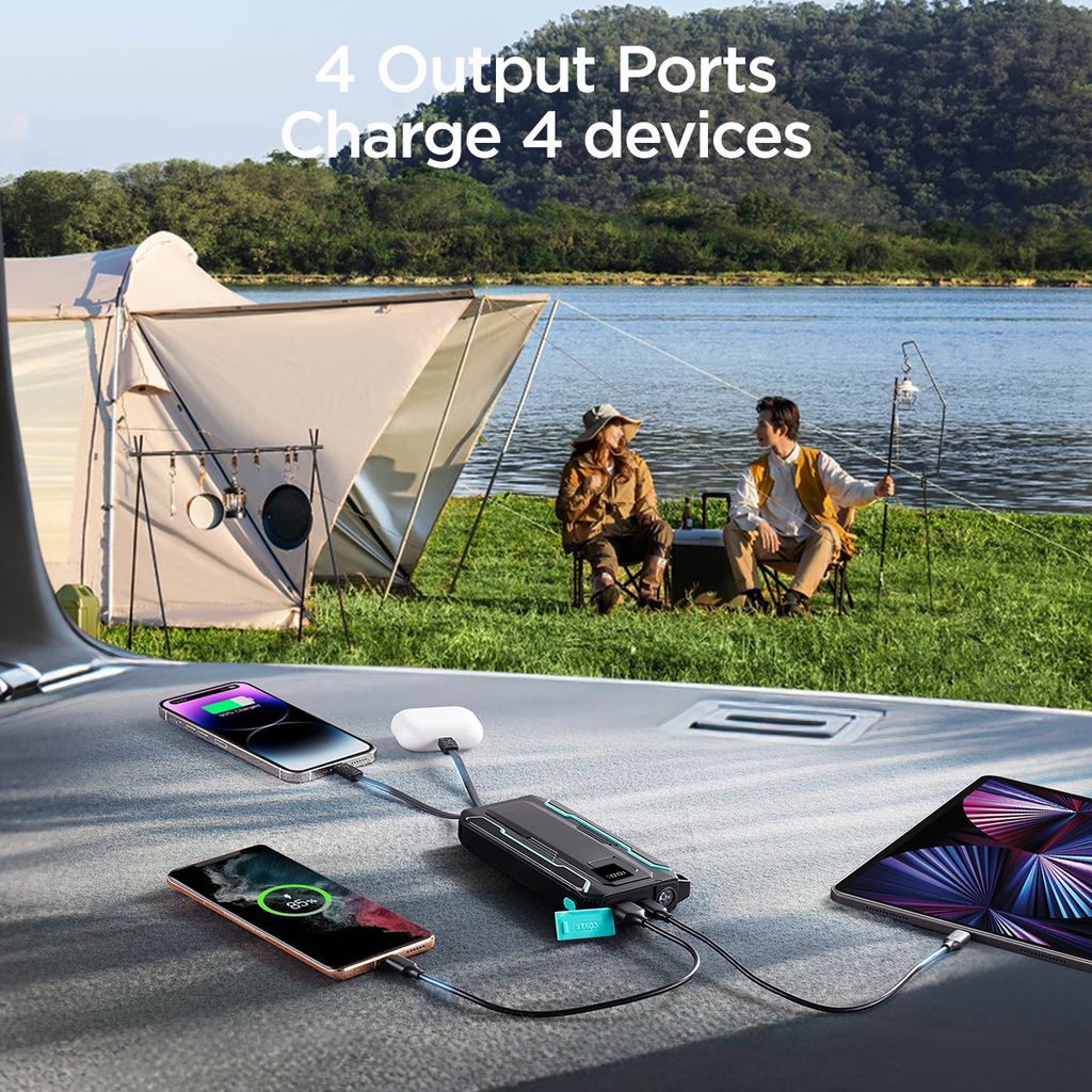 <p>Suuri kapasiteetti mahdollistaa useita latauksia, ja lisä USB-A- ja USB-C-porttien ansiosta voit ladata useita laitteita samanaikaisesti. Kompakti muotoilu tekee varavirtalähteestä helpon kuljettaa mukana.</p>