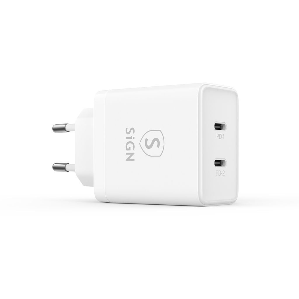 SiGN Dual USB-C PD Laturi 40W on tehokas ja kompakti seinälaturi kahdella USB-C-portilla nopeaan ja tehokkaaseen lataukseen. Power Delivery -tuki mahdollistaa kahden laitteen lataamisen samanaikaisesti – täydellinen puhelimille, tableteille, kuulokkeille ja muille USB-C-laitteille.